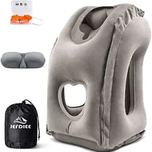 JEFDIEE Aufblasbare Nackenkissen Flugzeug Reise, Tragbare Reisekissen, Nackenstützkissen Bequem Unterstützt Kopf und Kinn, Kissen für Züge, Autos, Büro, Haus, mit 3D-Augenmaske, Ohrstöpsel