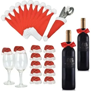 Weihnachts Tischdeko Weihnachtsmannmützen und Schleifen, 10 mal Bestecktasche, 10 mal Deko für Weingläser