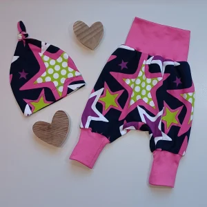 Pumphose (nach Schnitt von LYBSTES) mit Mütze – Sterne pink