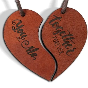 Leder Schlüsselanhänger „Herz-Hälften“ mit You & Me