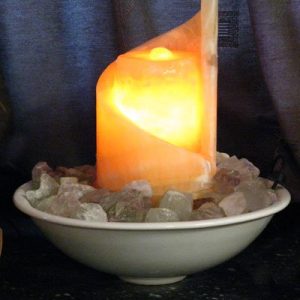 Zimmerbrunnen “Spirale”, Orangencalcit mit Licht