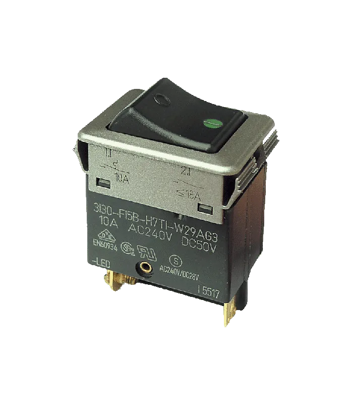 Zweipoliger DC Ein-Aus-Wippenschalter mit grüner LED