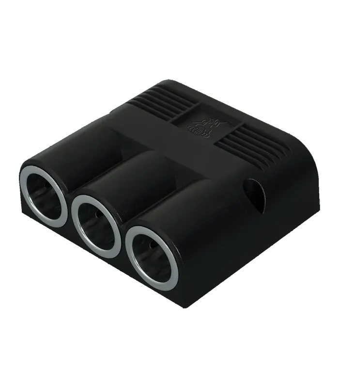 Dreifach-Aufbausteckdose für Universalstecker, max. 16 A/ 6-24 V. Anschluss mit Flachsteckern 6,3 mm