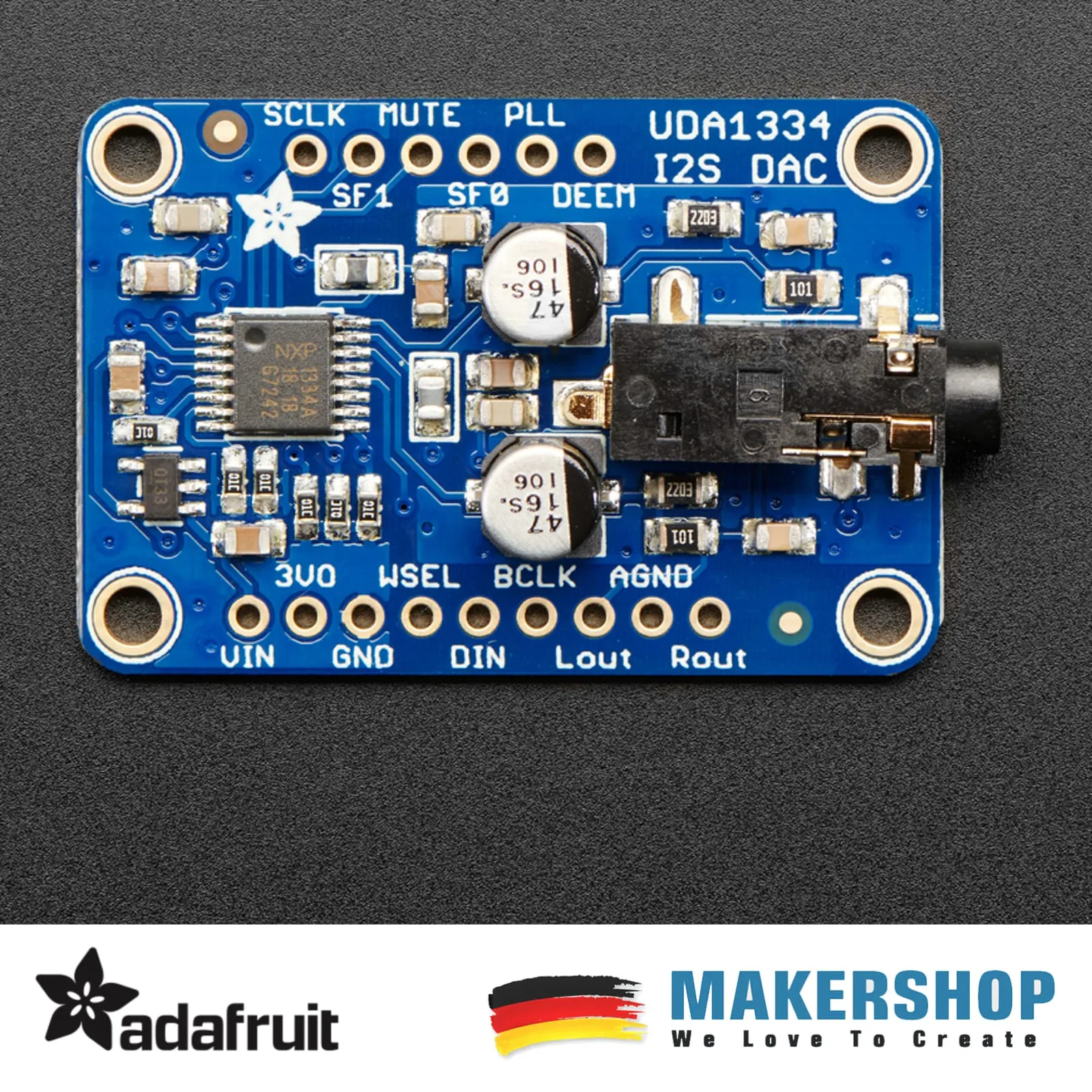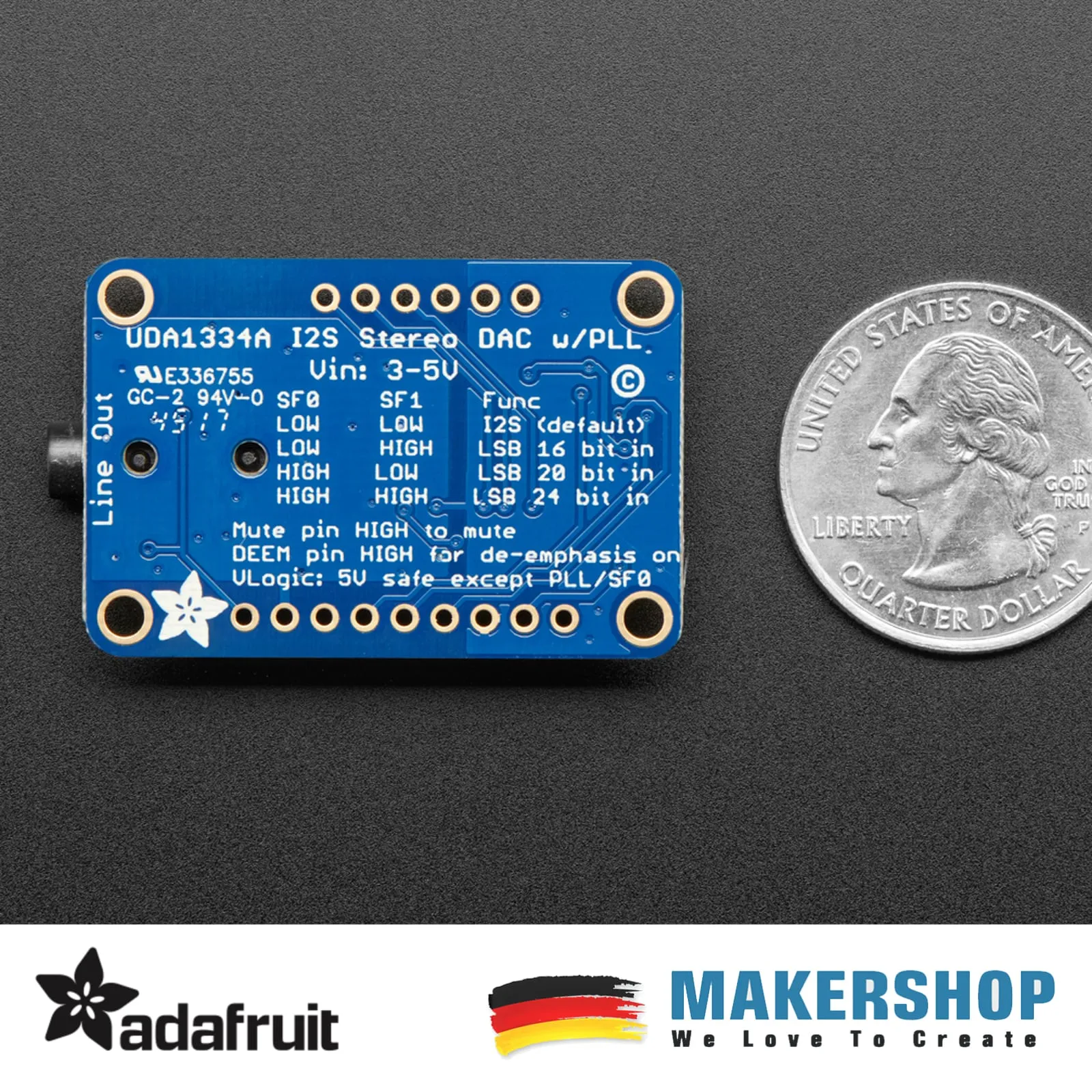 Dieses voll ausgestattete UDA1334A I2S-Stereo-DAC-Breakout-Board passt perfekt zu jedem Audio-Interface mit I2S-Ausgang. Es ist günstig, klingt aber großartig! Der NXP UDA1334A ist ein Allrounder: Sie können 3,3 V – 5 V Logikpegel (eine Seltenheit) verwenden und mehrere verschiedene Formate verarbeiten, indem Sie zwei Pins auf hoch oder niedrig setzen. Der DAC verarbeitet die Daten sofort und gibt einen klaren analogen Stereo-Line-Pegel aus.