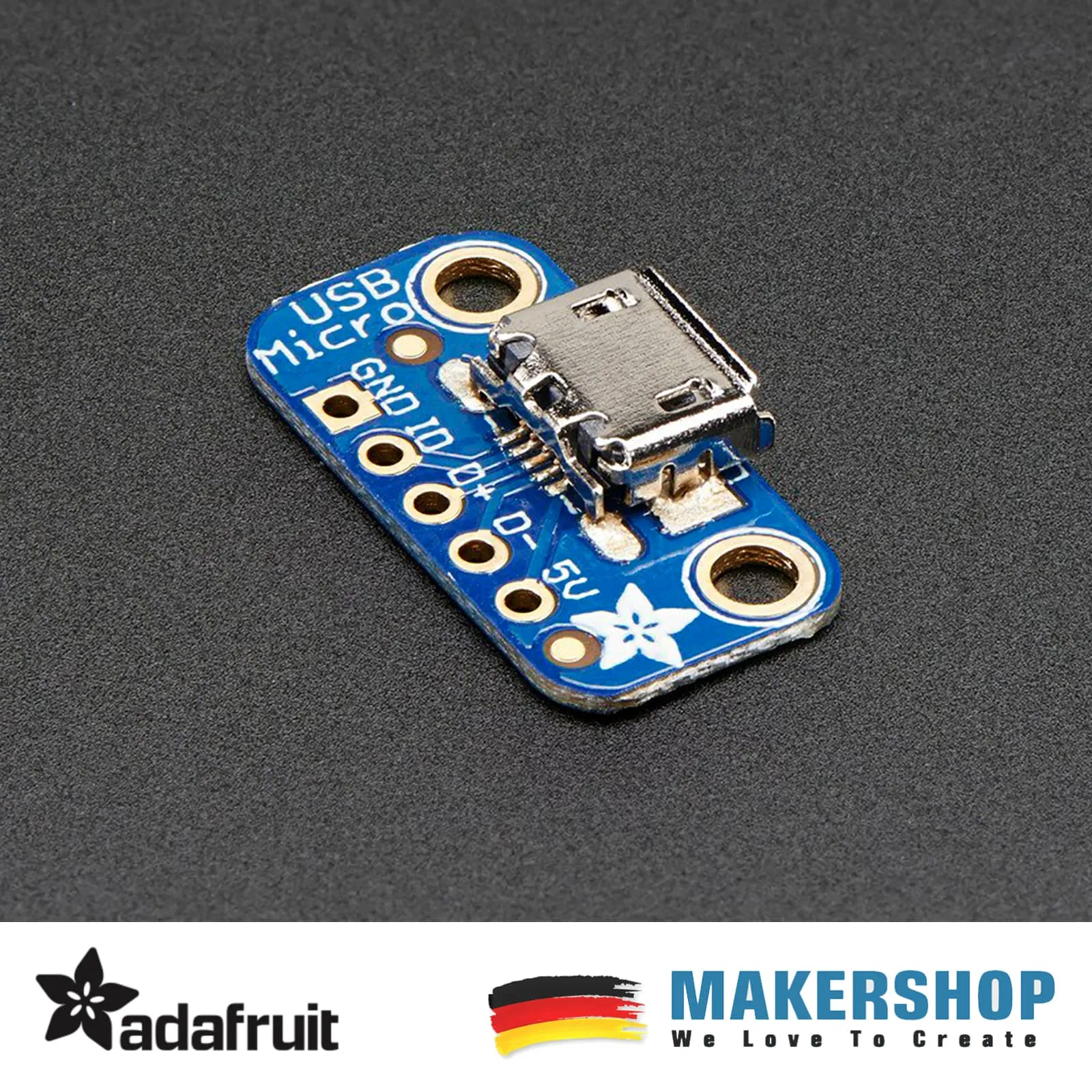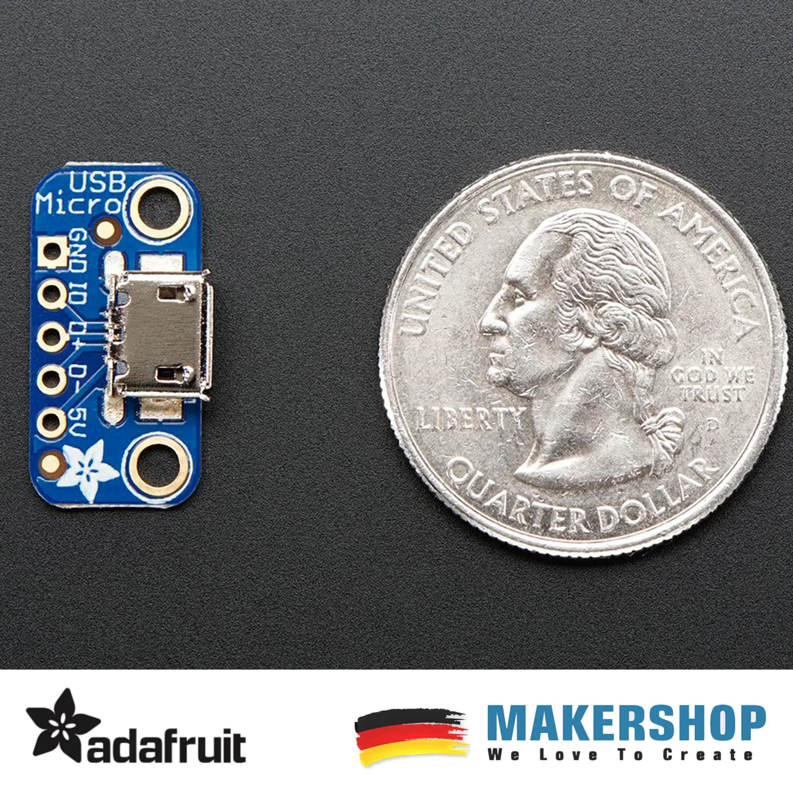 Kommt mit einer fertig montierten und getesteten Micro-B-Breakout-Platine und einem kleine 0,1-Zoll-Stift, damit Sie diese anlöten und Breakout leicht an ein Steckbrett/Breadboard anschließen können.