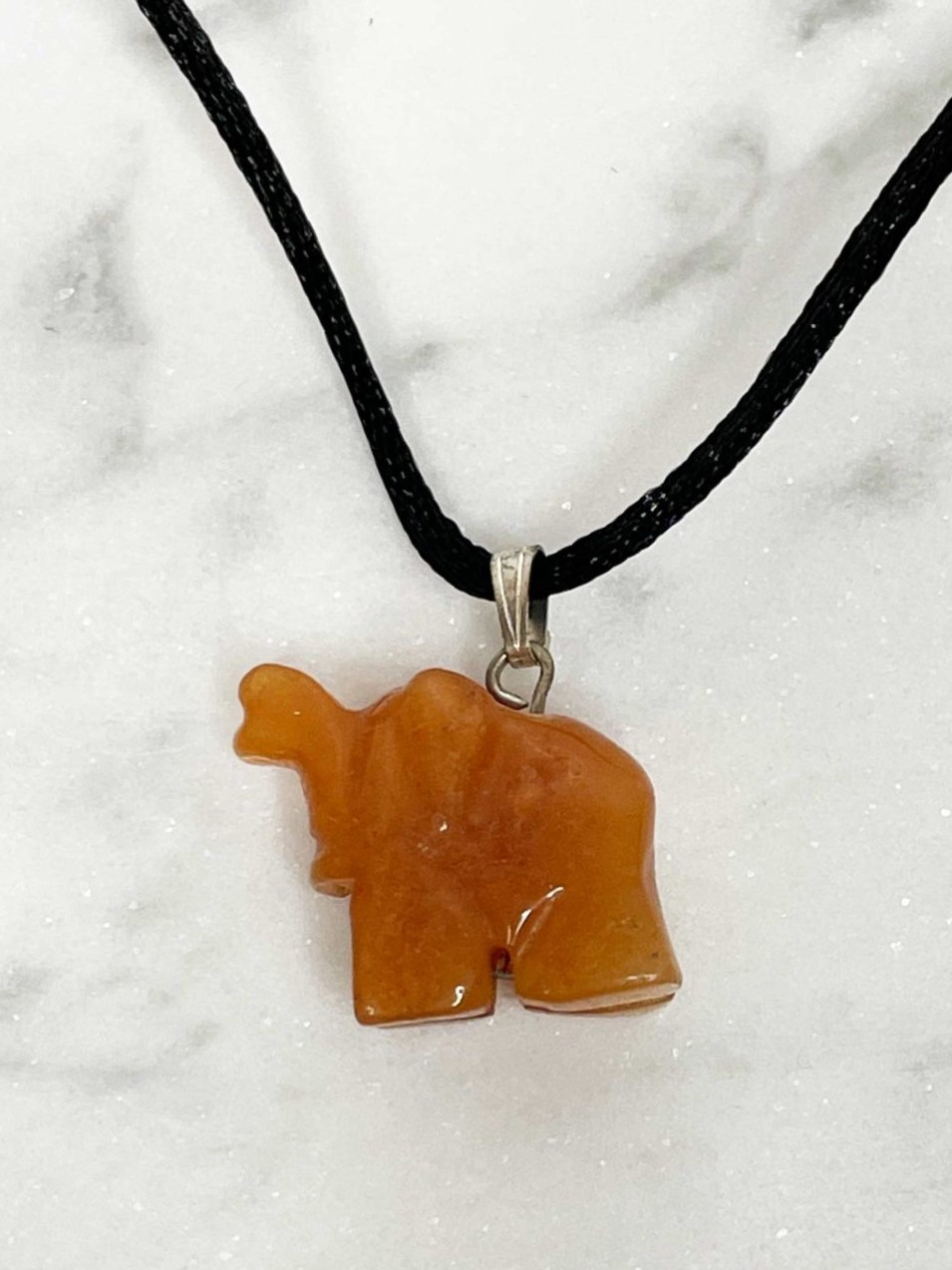 Ein schöner Edelstein-Anhänger in Form eines Elefanten aus dem Material “Roter Aventurin” mit polierter Oberfläche.