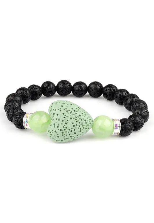 Armband aus Naturstein (Lavagestein/Pelelith) Herzchen schwarz / grün