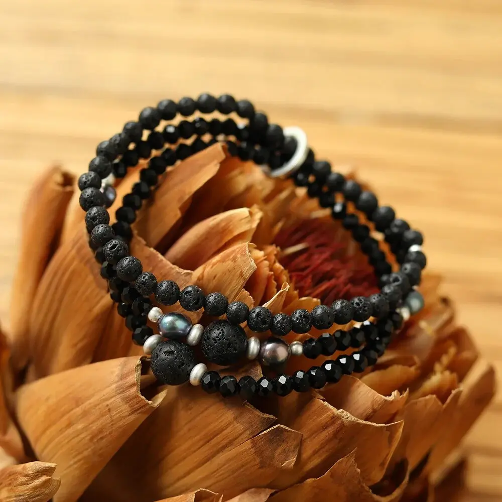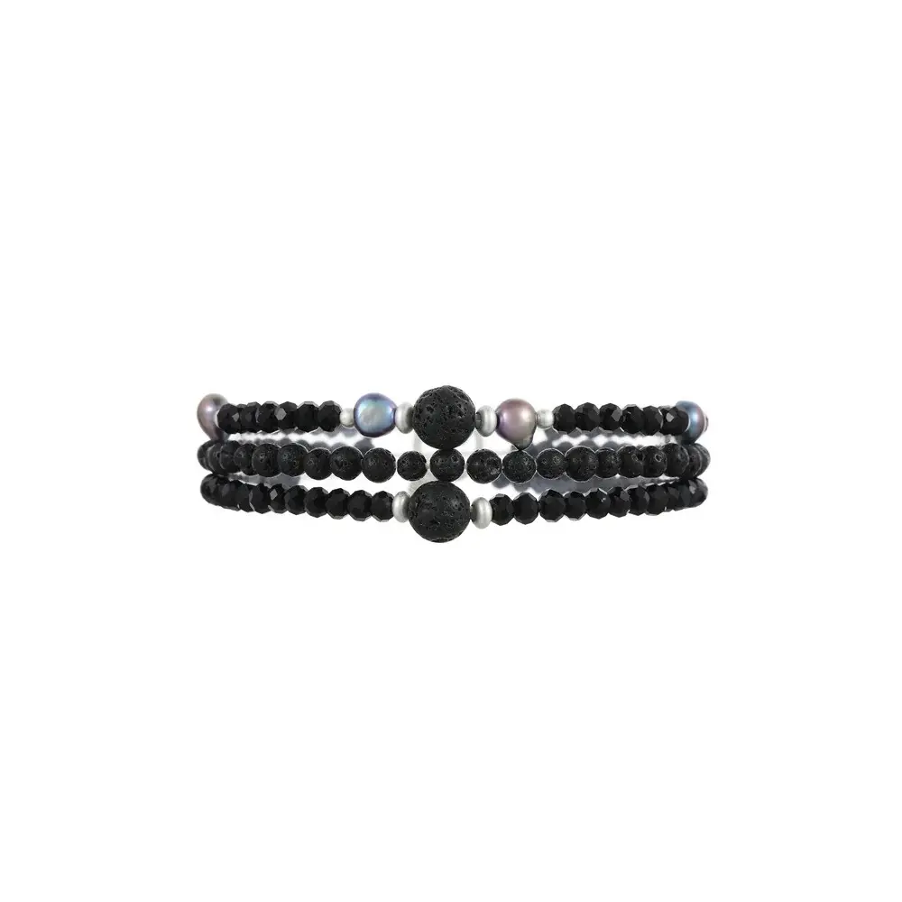 Wunderschönes, dreiteiliges Armband mit echten Süsswasserperlen, Lava und Glas. Alle hochwertig verarbeiteten Materialien sind frei von Nickel, Cadmium und Blei.