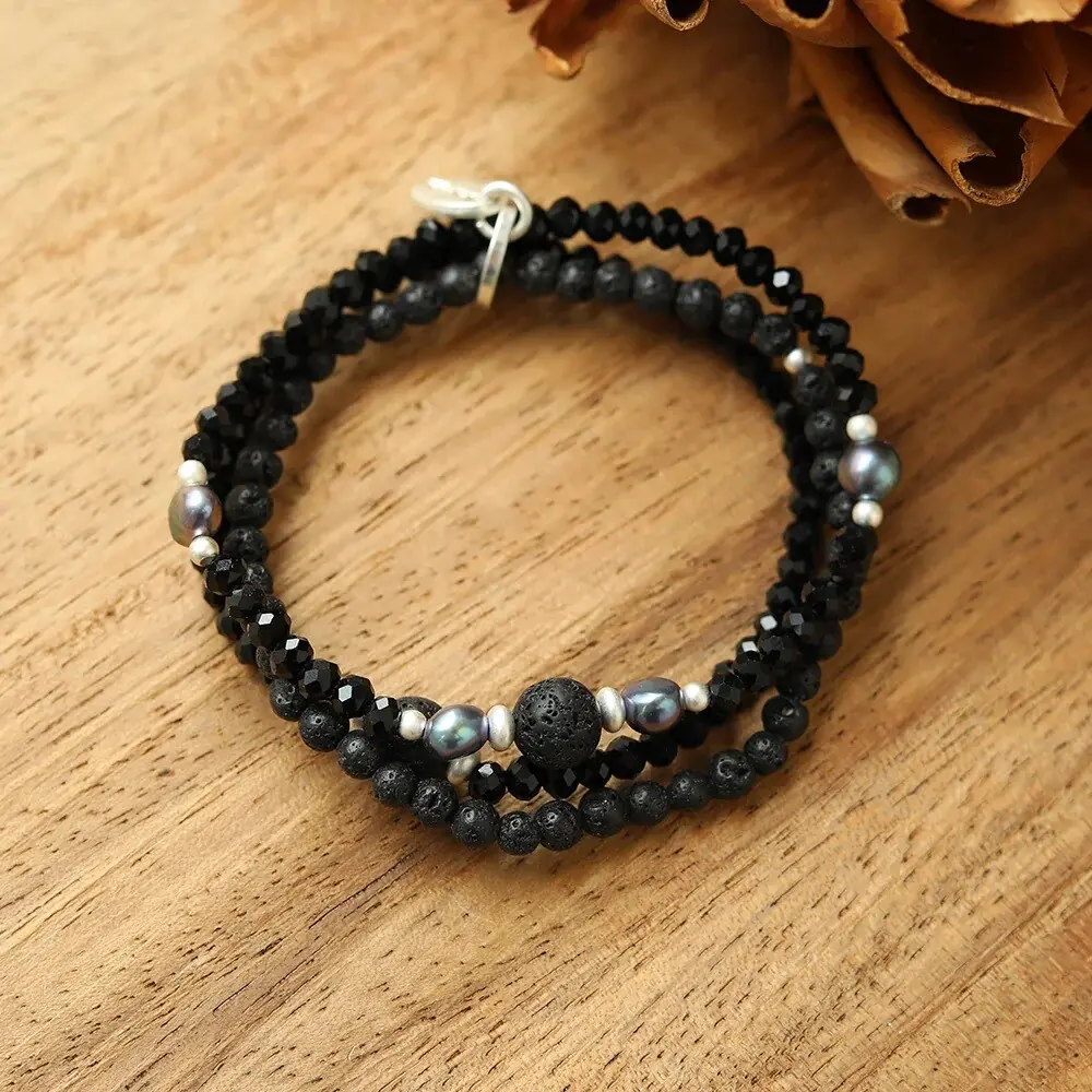 Armband mit echten Süsswasserperlen, Lava und Glas