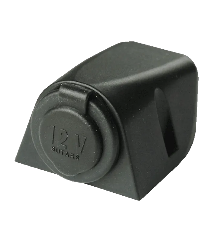 Aufbausteckdose mit Deckel für Zigarettenanzünderstecker und formschönen Befestigungsflansch. Passend für Stecker Ø 21 mm. Anschluss mit Flachsteckern 6,3 mm. Strombelastbarkeit 16 A, 12/24 V. Bohrlochabstand 44 mm.