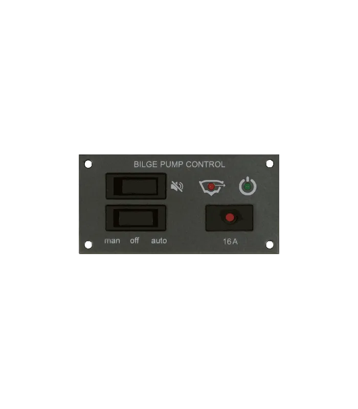 Bilgenpumpen-Kontrollpanel zum wahlweisen Schalten der Bilgenpumpe über einen Schwimmerschalter oder manuelles Einschalten.