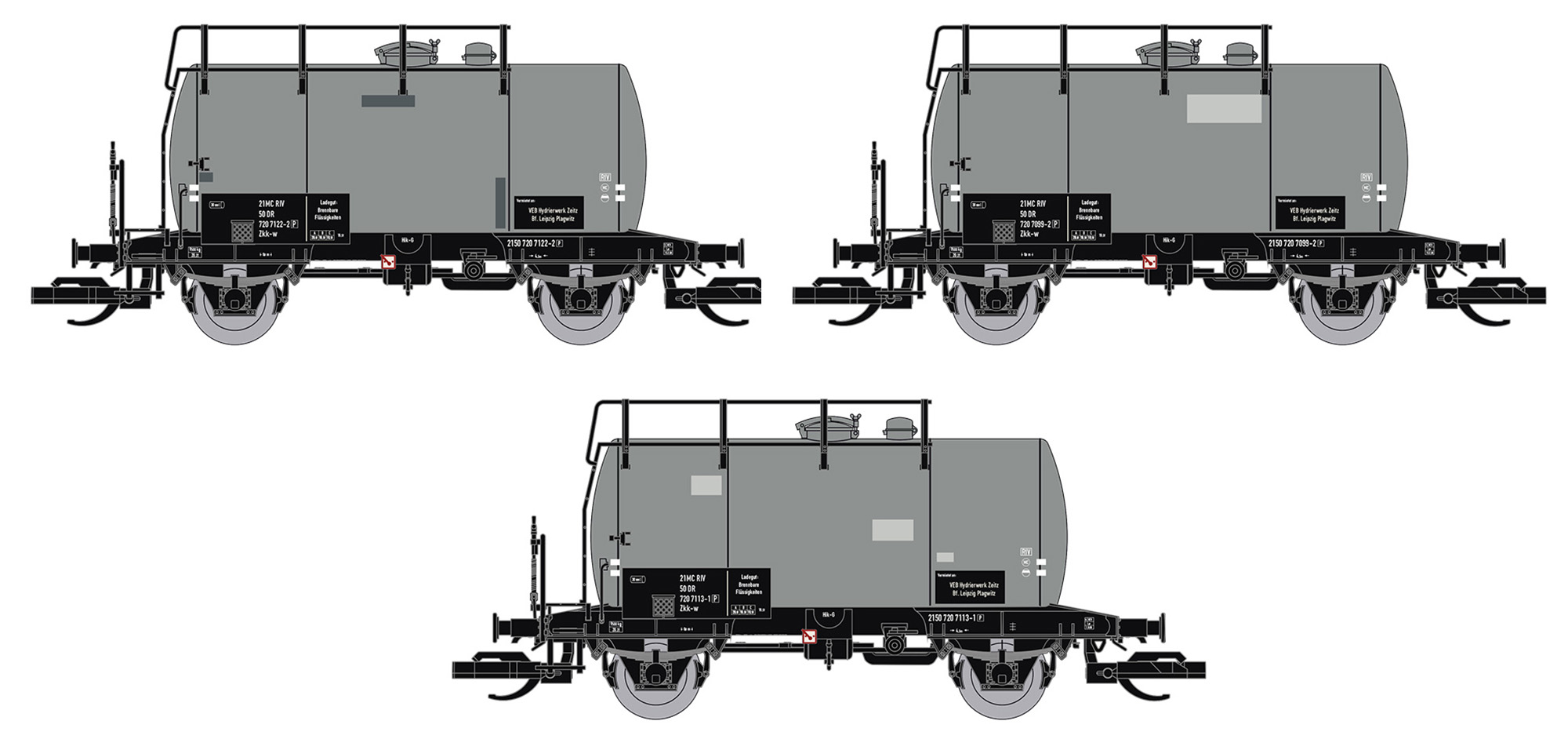 Kesselwagen Deutz – DR – VEB Hydrierwerk Zeitz – mit Flicken Wagennummern „720 7113-1“ – „720 7099-2“ -„720 7122-2“ – Epoche IV