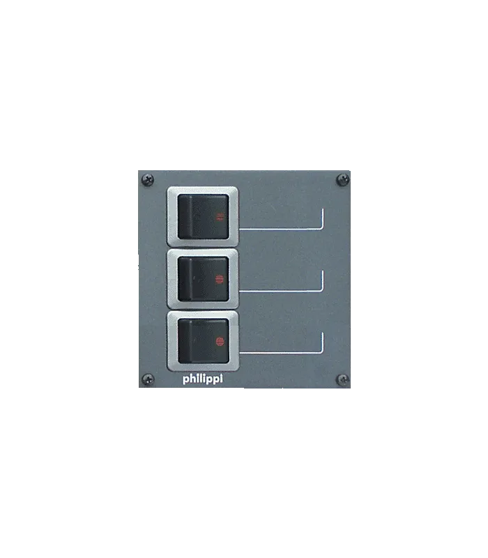 3 Stromkreise mit zweipoligen thermischen Wipp-Schutzschaltern 10 A für AC 230 V / 50 Hz.