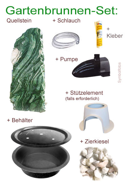 Sie können diesen Quellstein auch einfach als Gartenbrunnen Komplett-Set bestellen. (Wählen Sie hierzu einfach oben die Option in der Checkbox)
