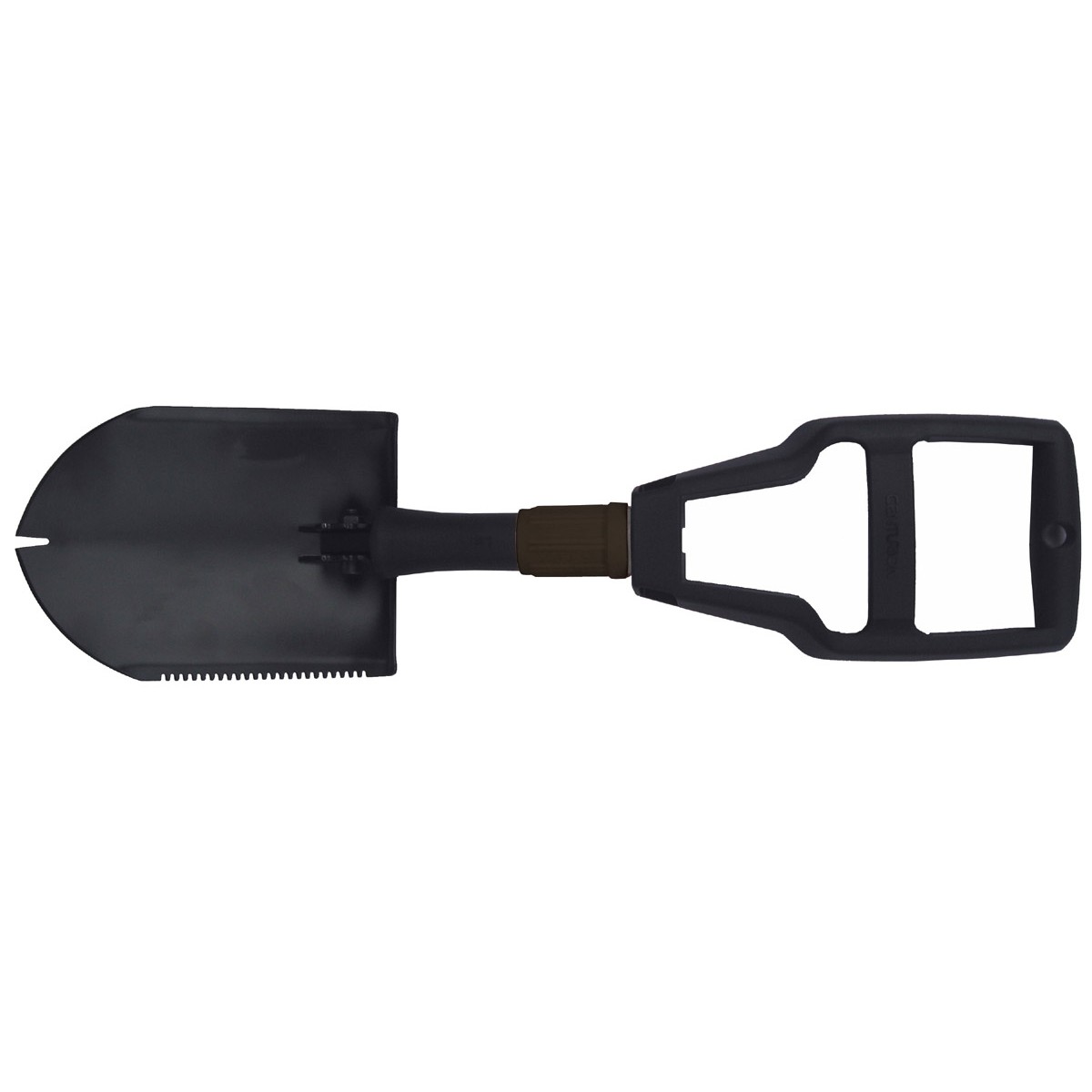 3-teiliger Klappspaten mit Kunststoffstiel und Hülle.