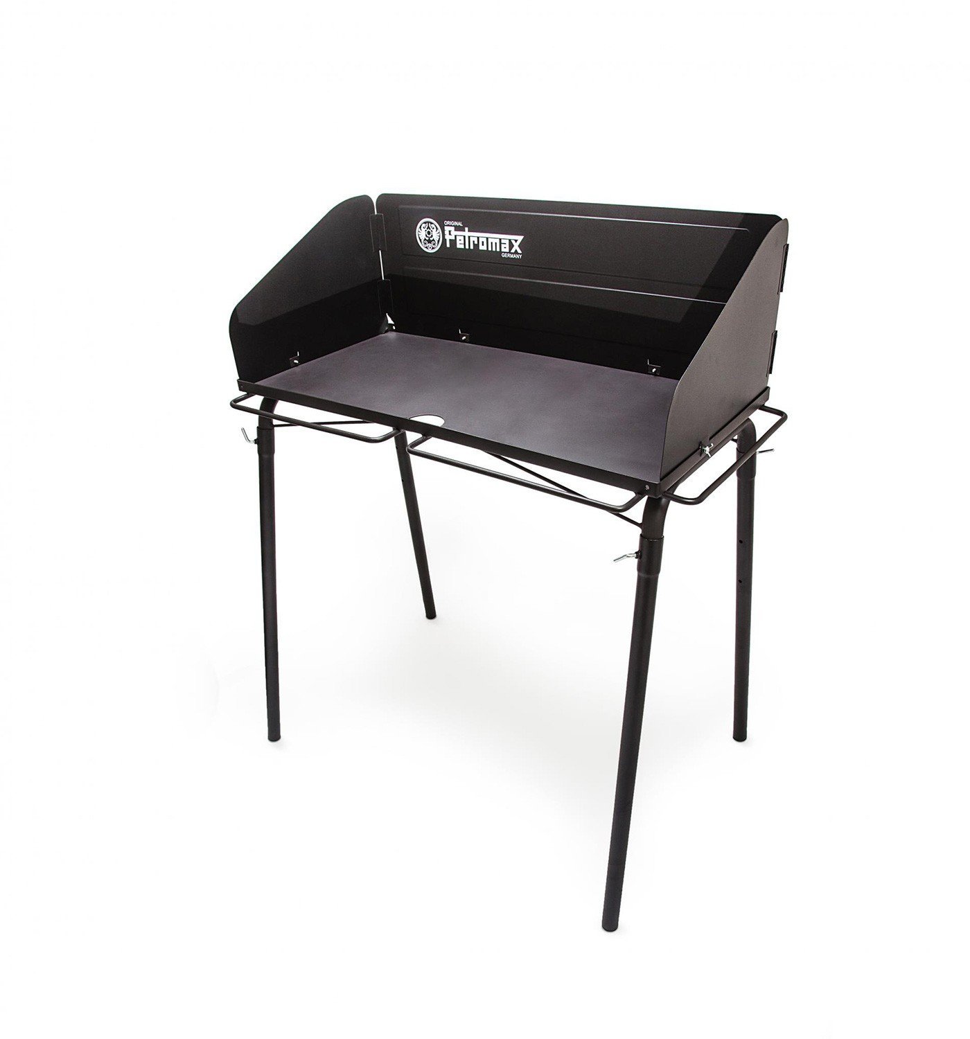 Die massiven Standbeine sind leicht zu montieren und tragen bis zu 100 kg Gewicht (max. Flächenbelastung). Der Tisch ist alternativ auch ohne Standbeine verwendbar und kann auf eine beliebige, hitzeresistente Unterlage gestellt werden.