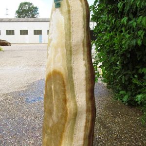 Dieser karamell farbige Onyx besticht durch seine wunderschöne Zeichnung und manchmal auch durch leichte Transparenz an einigen Stellen. Der Stein wird komplett geschliffen geliefert und wird einen edlen Akzent in Ihrem Garten setzten. Das Material ist 100%ig frostsicher.