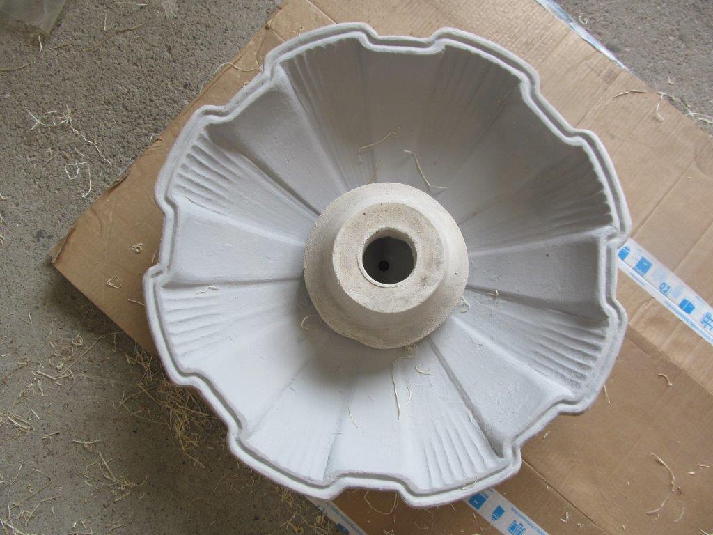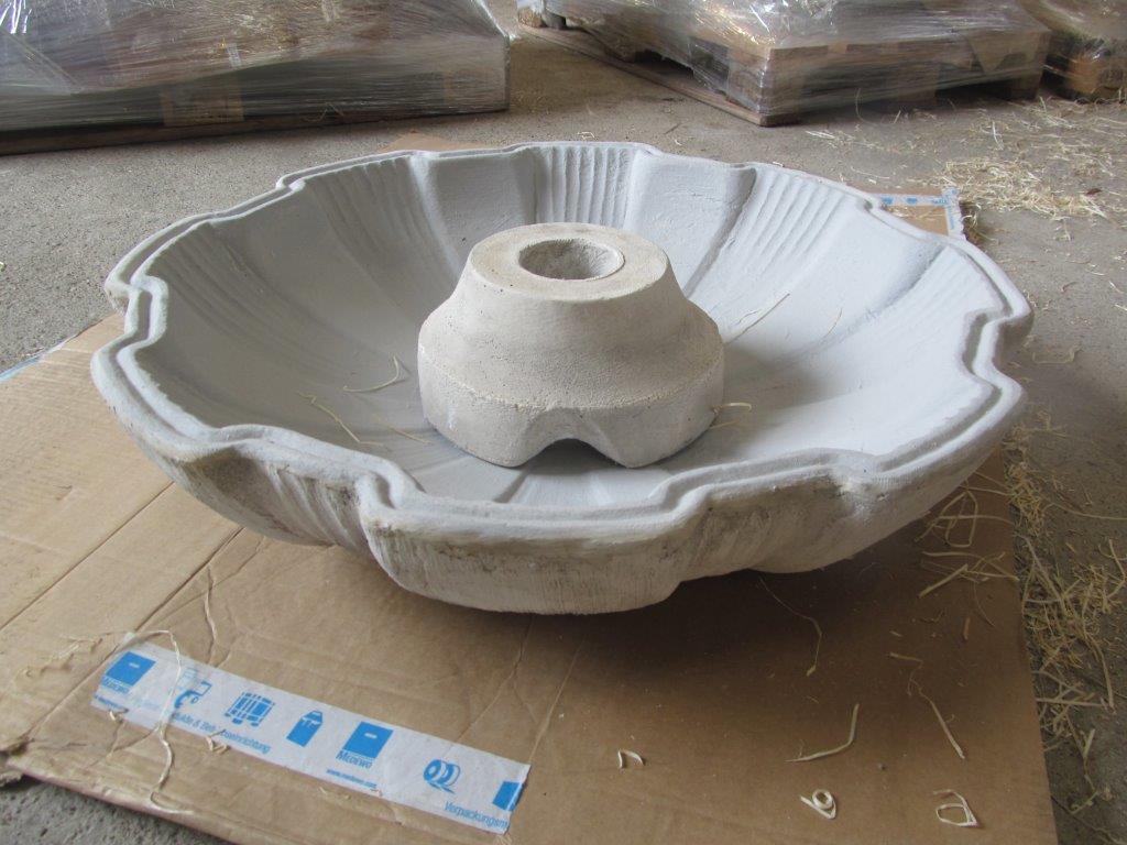 Die Pumpe wird direkt unter dem Pinienzapfen in der Schale platziert. Das Pumpenkabel wird durch die mittige Bohrung der Schale in den Sockel nach unten geführt (hierfür muss der Stecker der Pumpe abgetrennt werden)! Bevor Sie die Brunnenschale mit Wasser befüllen, muss die Mittelbohrung (wodurch nun schon das Pumpenkabel geführt wurde) mit einem Montagekleber abgedichtet werden!