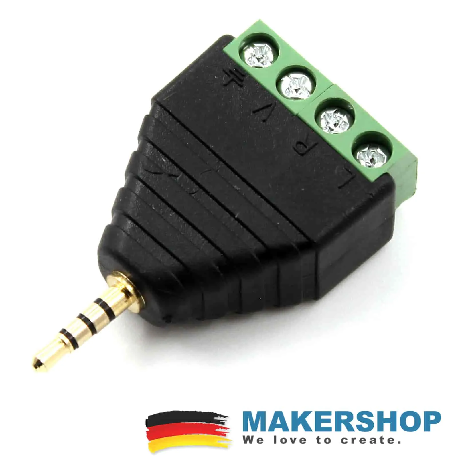 TRRS Stecker/Adapter mit Schraubklemmen.