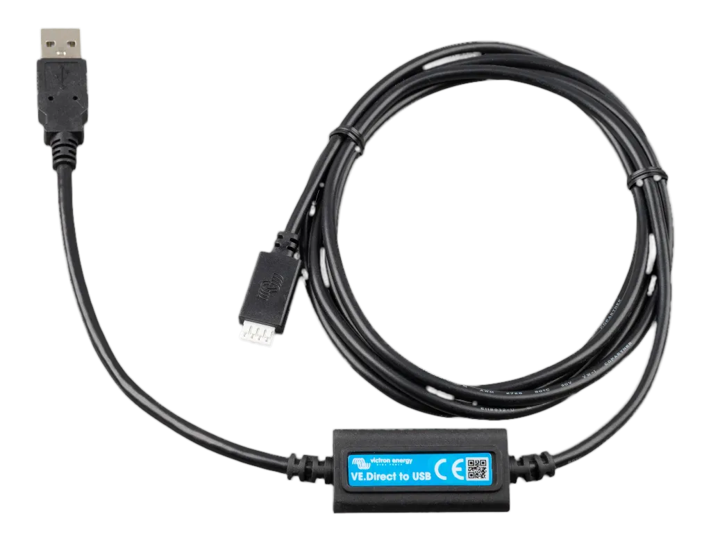 Das VE.Direct zu USB-Interface verbindet Produkte mit einer VE.Direct-Verbindung mit Geräten mit einem USB-Port, wie z B. einem Computer. Mit diesem Kabel kann man außerdem mehr als zwei VE.Direct-Produkte an ein einzelnes GX-Gerät anschließen.