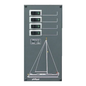 Einpoliger DC Ein-Aus-Wippenschalter mit Überstromschutzfunktion und grüner LED-Funktionsanzeige. Wippe schwarz, Rahmen silber. Schnapprahmenmontage, Befestigungsausschnitt 14,8 x 34,2 mm, Gerätebreite 18 mm.